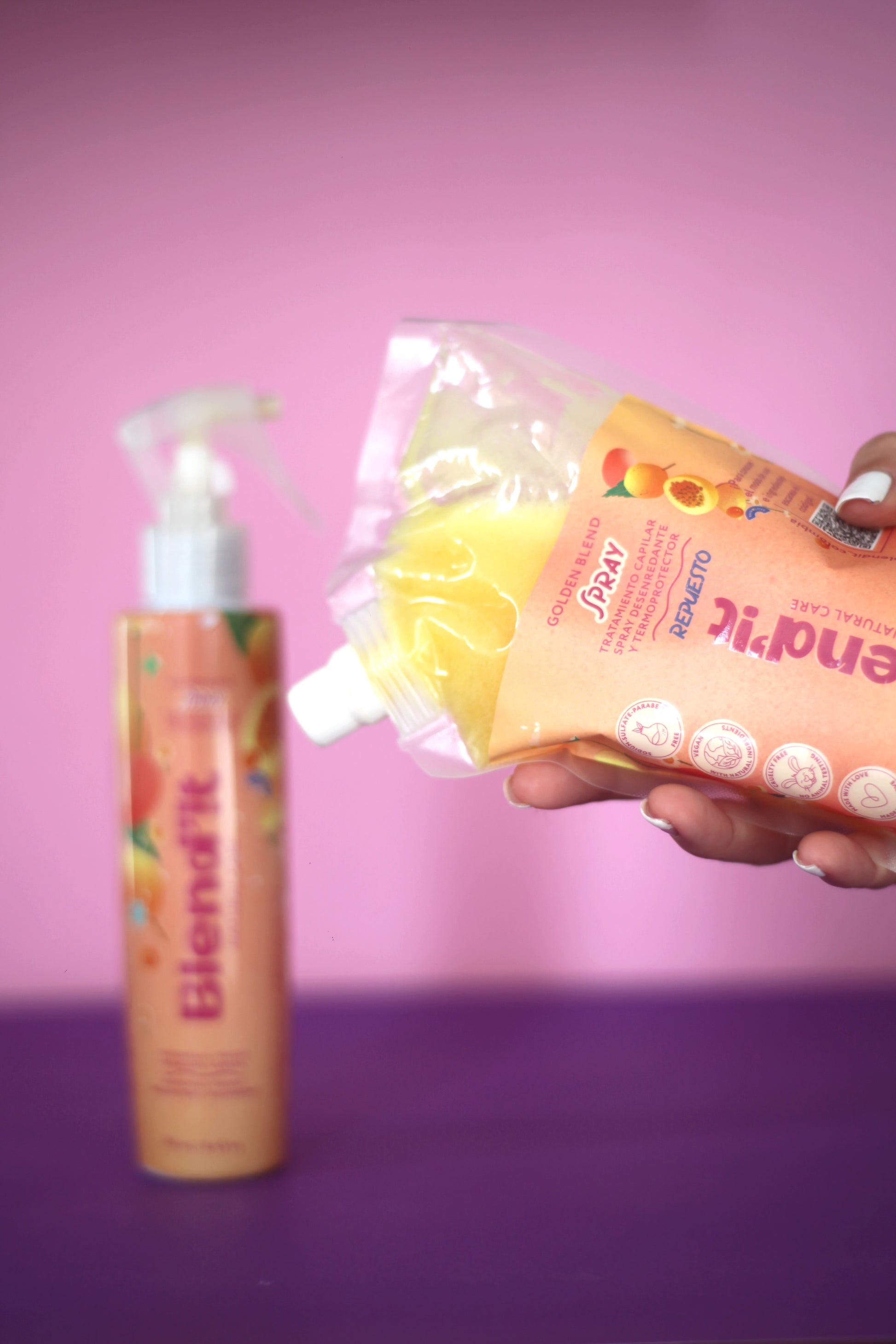 Nuestro Golden Blend Spray ahora también en formato repuesto. La misma fórmula suave, ligera y efectiva que aman los niños (y sus papás), en una presentación de 500 ml que rinde para 2 recargas completas.